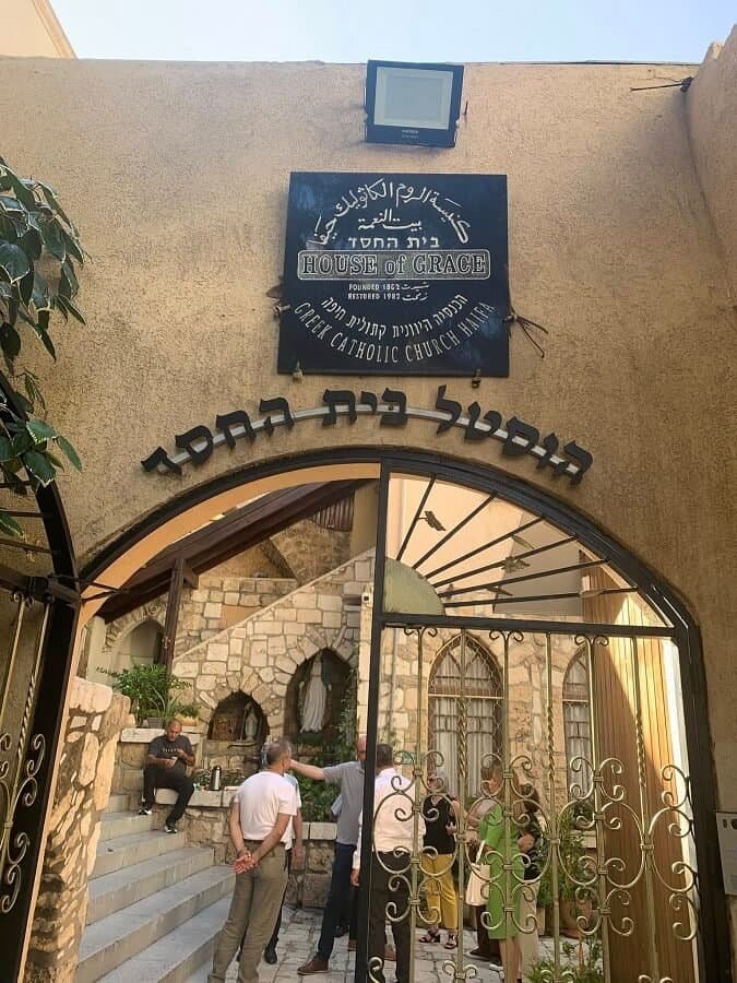 بعد تسليم الجهاز للمستشفى والتقاط الصور التذكارية توجه اعضاء النادي الى كنيسة السيدة وهي من اقدم الكنائس الحيفاوية تم بناؤها عام ١٨٦٢ وبها قُبروا المطران الشهير غريغوريوس حجار والمطران المرحوم مكسيموس سلوم، حيث شرح من يحافظ وعائلته على صيانتها؛ السيد جمال كميل شحادة وايضاً الرئيس المؤسس للنادي؛ د. حاتم خوري عن تاريخ هذه الكنيسة العريقة وطريقة بناءها العجيبة، عن المدرسة التي كانت بجانبها مع مركز جماهيري وبيت للرهبان (انطش) الذي كان يعش به ١٤ راهب حتى فترة قيام الدولة بعدها كانت الكنيسة مهجورة حتى العام ١٩٨١، وقتها قدم المرحوم كميل شحادة الذي اخذ موافقة المطران انذك؛ مكسبموم سلوم ليرمم الكنيسة ويفتتحها في شهر ايلول (٩) ١٩٨٢ ويقيم بجانبها جمعية "بيت النعمة" الرائعة لتأهيل السجناء وذوي الحاجة حيث يخدم كرئيس الجمعية رئيس النادي السابق؛ پروفيسور داوود بشوتي.